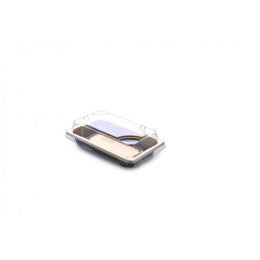 علب بلاستيك للحلويات والسوشي ذات القاعدة الذهبي مع أغطية شفافة تأتي بأحجام وأشكال متنوعة يمكن استخدامها في المنازل والمطاعم مثالية لتخزين مجموعة متنوعة من الأطعمة اختيار نوع العلب يعتمد على حجم الطعام واحتياجاتك الشخصية.