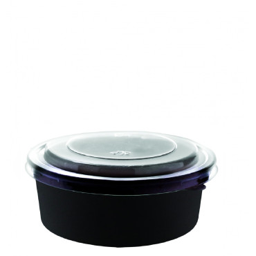 زبدية ورق أسود بسعة 32 أونصة وقطر( 165 مم) 200 زبدية بالكرتون مع أغطية شفافة. هذه الزبدية مصنوعة من ورق عالي الجودة وتأتي مع غطاء بلاستيكي شفاف  بفضل قطرها الواسع  ي..