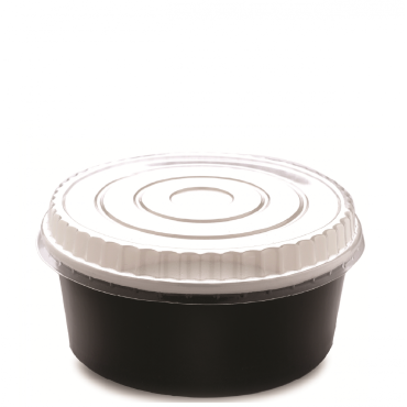 زبدية ورق أسود بسعة 16 أونصة وقطر( 110 مم) 1000 زبدية بالكرتون مع أغطية شفافة. هذه الزبدية مصنوعة من ورق عالي الجودة وتأتي مع غطاء بلاستيكي شفاف  بفضل قطرها الواسع  ..